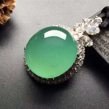 大件!高冰起光绿水,完美无裂纹,简单大方,个别小的棉丝不影响,裸石37.8:9.5:5mm,重金大钻