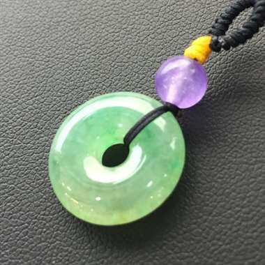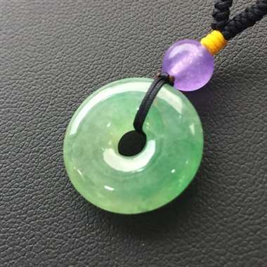 冰绿平安扣吊坠,冰冰润润的,飘着绿花显得很清爽哦