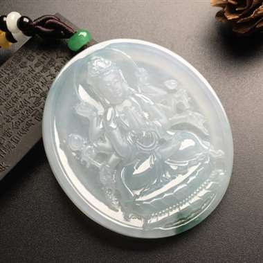 糯冰飘阳绿观音,细腻完美,整体端正祥和,线条很有柔顺,很有灵气~2