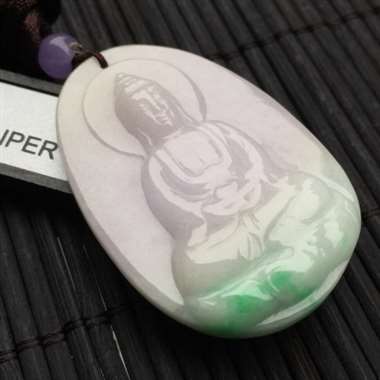 冰种飘花挂件,阳绿色泽艳丽,底庄细腻,完美无暇。
