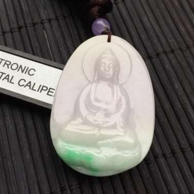 甜绿坐佛,尺寸:14.5*20.8*3.9mm,满色,种好水头,水润色甜绿,品相佳,笑脸开怀。H12