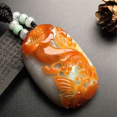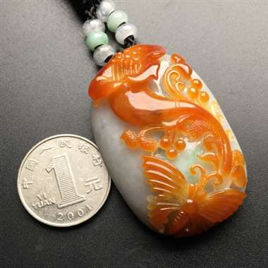 0331 巧雕红翡蝶恋花 尺寸:52-34-13.5毫米