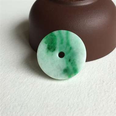 飘阳绿 平安扣 整体绿底 飘阳绿 质地细腻 水润 颜色漂亮 无纹裂 尺寸 22.3x3 毫米