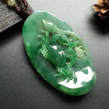 翡翠A货精工阳绿霸气龙牌玉佩 老坑料,种水足,料子细腻,雕工上承。佩戴漂亮大气。规格:61*40*6