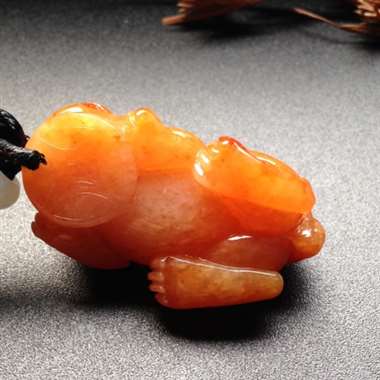 巧雕红翡貔貅(招财进宝)尺寸41-25-18毫米