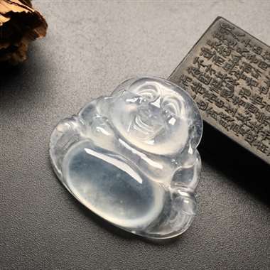 冰种逍遥佛:完美无裂纹,种老起胶,雕工精致,饱满,尺寸:32/18.9/6.7 ,tm15