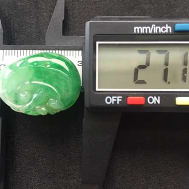 冰种墨翠龙行天下,纯手工打造,玉质细腻,打灯通透阳绿。尺寸:42.8-25.9-9.3