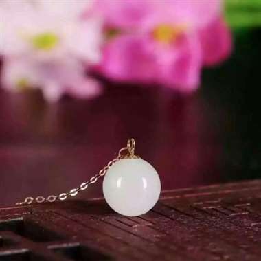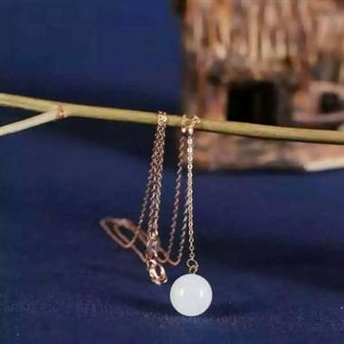 和田白玉套链 18K玫瑰金项链 链子可以调节长度 白润青海料圆珠 主石直径10mm