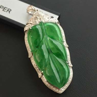冰种荧光吊坠 18K金镶嵌 裸石20-10毫米 连金32-24-14毫米