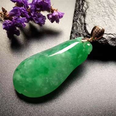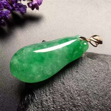 冰绿豆子吊坠,真金真钻镶嵌,完美,种水超好,玉质细腻