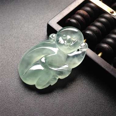 福利!冰种飘绿特色荷花鱼牌:完美无裂纹,种老起胶,雕工精致,色泽漂亮,饱满,尺寸:57.6/40.1