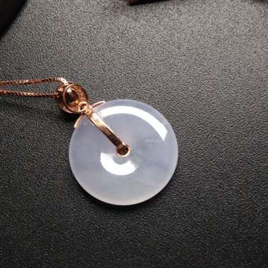 冰种紫罗兰平安扣 18K金镶嵌 配银链 尺寸19-3毫米