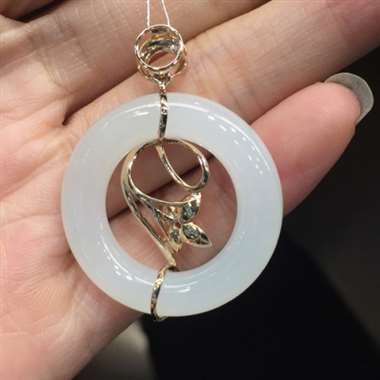 和田玉平安扣吊坠,精致可爱,18k金精工镶嵌,线条流畅自然,款式新颖,玉质温润油亮,洁白无瑕,很美很