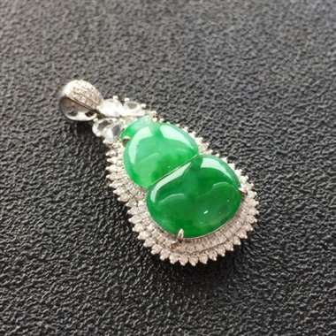 冰种阳绿18k金镶嵌完美葫芦吊坠