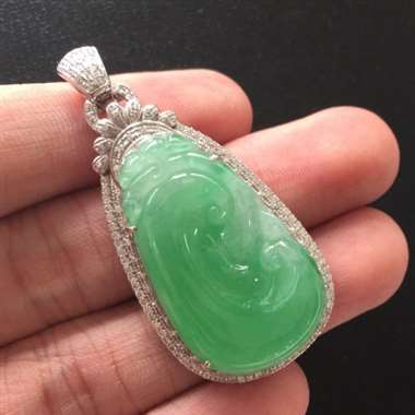 飘绿佛公吊坠,真金真钻镶嵌,完美,种水超好,玉质细腻.