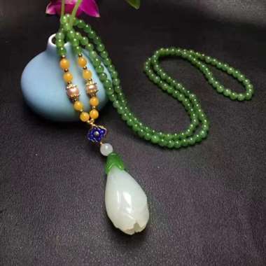新款4.5mm碧玉长链,配天然蜜蜡、和田玉玉兰花,平时一条连子都不止这个价了,现货5条,卖完没有