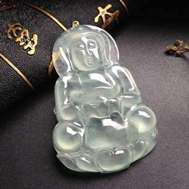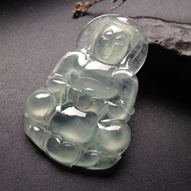 冰种晴水佛公,背部有黄翡小点,图六可见