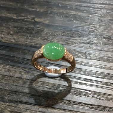 M阳绿蛋面戒指,真金真钻镶嵌,完美,种水超好,玉质细腻。