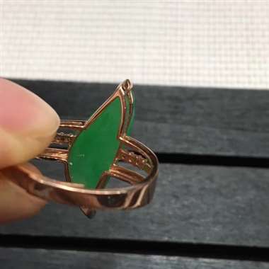 冰种阳绿18k金镶嵌钻石完美,马鞍形戒指,玉质细腻,种好水足,上手效果迷人。圈口18,可改圈口。