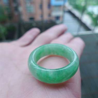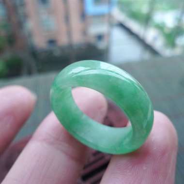 111422A货翡翠完美满色戒指,圈口17.2mm,颜色靓丽,种水好,有种有色,玉质细腻,佩戴效果好,尺寸17.2*7*3.5mm