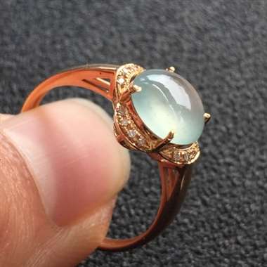 冰种18k金镶嵌翡翠蛋戒指。圈口:17.0。裸石:7.9-7.5-3.5