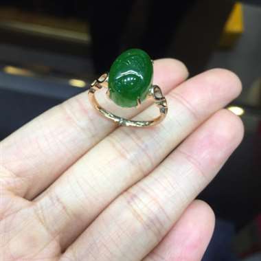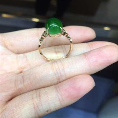 和田碧玉戒指,精致小巧,18k金镶嵌,玉质温润,碧绿通透水润,水头十足,款式小巧精美,上手效果棒棒哒