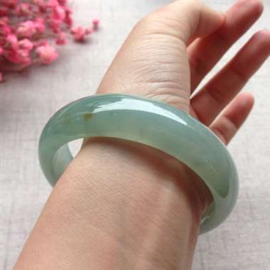 天然翡翠A货糯种飘绿贵妃手镯