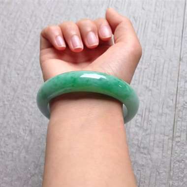天然翡翠A货53.4圈口圆条手镯, 糯种飘阳绿,特别唯美的一条!