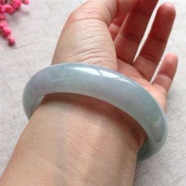 冰浅紫底飘绿正装手镯,口径:55.8*14*8.7,68.78g,有纹无抠感,不影响佩戴效果!