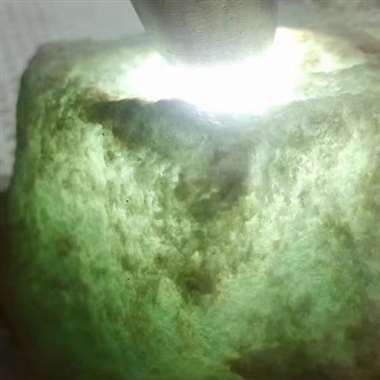 DJ617新货1.04kg老坑木那全赌高冰,全身脱沙不变种,灯泡级别,一透到底,灯下荧光强、冰感十足,有底色,可赌高冰飘花大牌、挂件,可开窗的料,大涨的节奏,对庄来询[勾引][勾引]尺寸 9.5/9.5/8.5cm