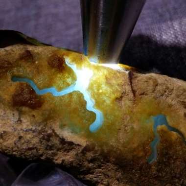 WW258新货340克莫西沙老蓝水,石头已大面积脱沙[色][色],种好,灯打水长范围大,好东西看质