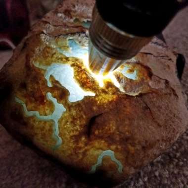 DZ619 5259克莫弯基全堵料,一处脱沙见肉,打灯表现不错,有阳绿色表现,老皮壳沙砾均