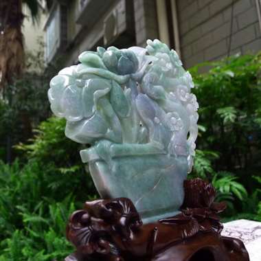 翡翠A货精雕浅紫春带彩和和美美摆件 种水足,雕工精 裸石规格:185*170*11mm 含底座:28