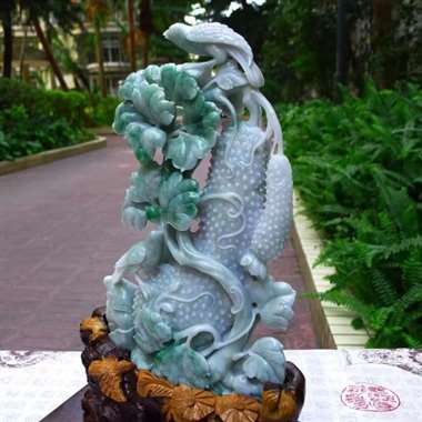 精美水润 飘花 精美 人生如意 多子多福 雕刻精美线条流畅种水好 搭配精美高档檀木底座 尺寸 33