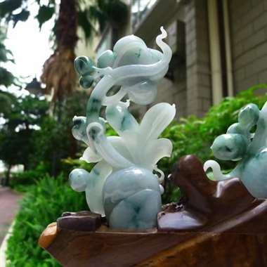 翡翠A货老坑冰透飘花君子之风高风亮节君子兰摆件 裸石尺寸:70/140/30*165/80/20