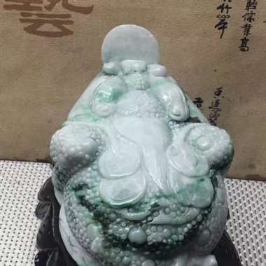 翡翠A货老坑水润浅绿飘绿精工招财进宝财神爷摆件 约裸石尺寸:240/155/105 连底坐:400/