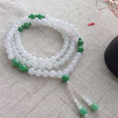 冰种三彩珠链,玉质细腻、个别有点裂纹、上身效果更美。