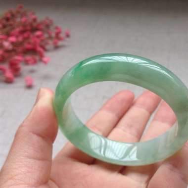正圈,糯冰种飘绿,尺寸56.0-11.3-7.7,冰润细腻,种老水头足,完美