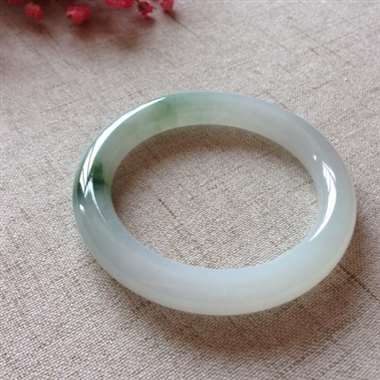 正圈,冰种飘绿,尺寸56.4-13.1-8.0,水润漂亮,颜色亮丽,完美