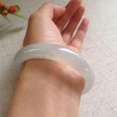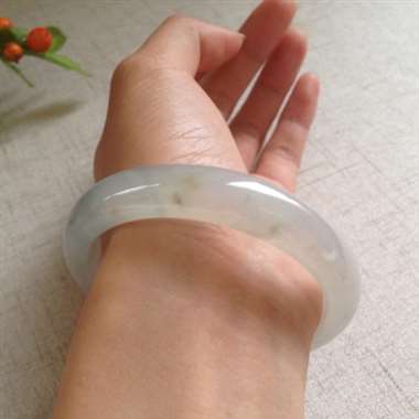 翡翠A货;冰糯种.飘花正圈.料子细腻清爽干净.水头十足.完美无瑕.尺寸:54.5mm10.8mm6.