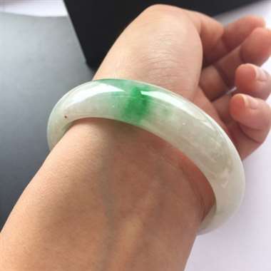 满绿正圈,尺寸57.4-13.7-8.4,水润细腻,颜色亮丽,完美