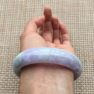 冰种油青完美圆条手镯,有一石纹,已愈合不扣手,不影响质量美观,图三可见。尺寸:54.5*9.3*8.