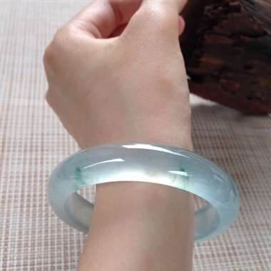 高冰飘花圆条手镯,规格:57.1*12.1*11.3,冰冰润润的质地,底子均匀润泽,淡底色清新迷人,