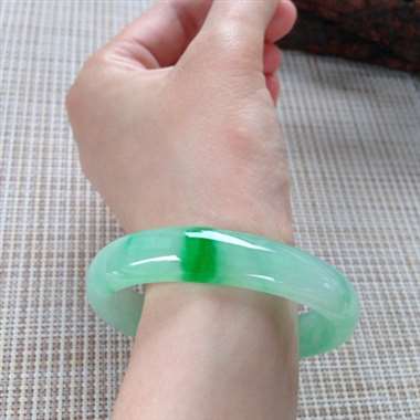 翡翠A货55圈口正装手镯, 底子细腻,带阳绿,完美色正,不可多得的美物!