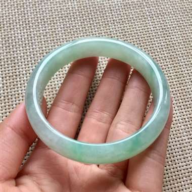 翡翠A货.冰糯种.飘花手镯.正圈.料子清爽.肉质细腻干净.种老水头十足.版型好.完美无瑕.尺寸;53