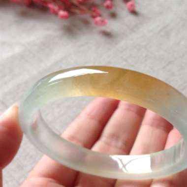 87#贵妃54.1圈口美人镯,糯冰带底色飘花,水润温婉,上手效果水灵动人,尺寸54.1*49.3*1