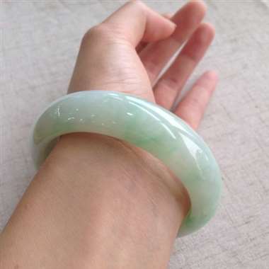 冰飘绿正装手镯,口径:46.7*14*7.8,49.14g,有棉线,不明显,不影响佩戴效果!一抹绿飘