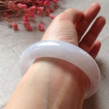 翡翠A货59圈口手镯,糯冰种带紫底,完美有一点棉!