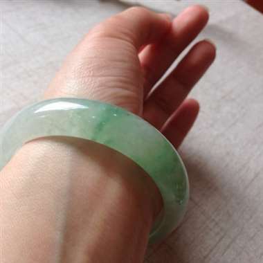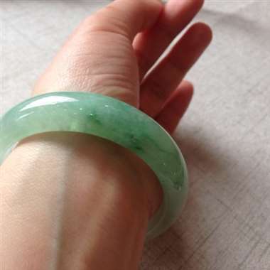冰飘绿大圈口正装手镯,完美!