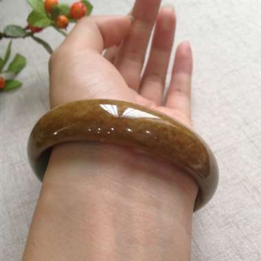冰黄加绿贵妃手镯,有微纹,打灯可见,不影响佩戴效果